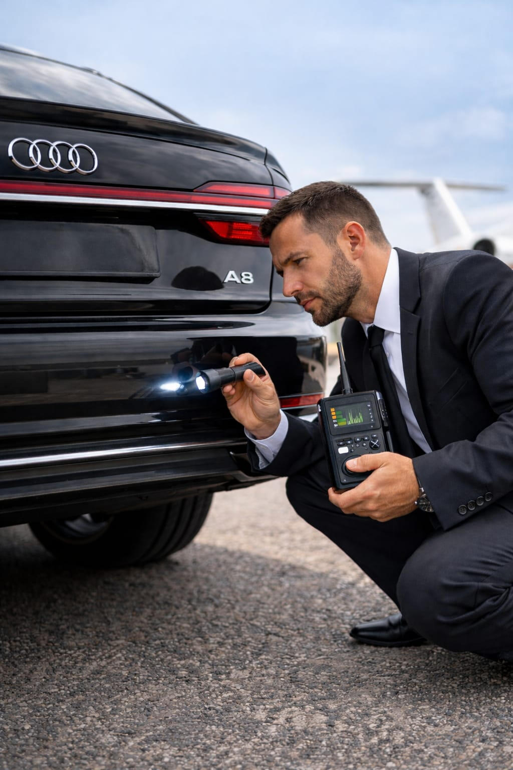 A rigorous inspection of your vehicle to detect hidden surveillance equipment, including GPS trackers, microphones, cameras, and other sophisticated electronic tracking or eavesdropping devices